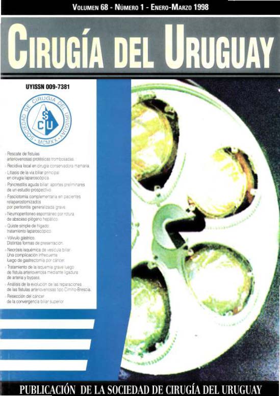 Ribero G, de Mello W, Cartazzo JM. Ischemic gallbladder necrosis, a rare complication after cancer gastrectomy. Cir. Urug. [Internet]. 1998 Apr. 19 [cited 2026 Mar. 28];68(1):48-52. Available from: https://replica-revista.scu.org.uy/index.php/cir_urug/article/view/4291